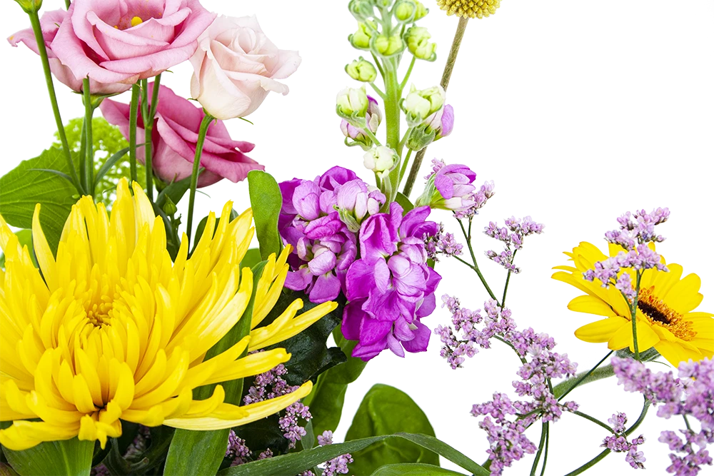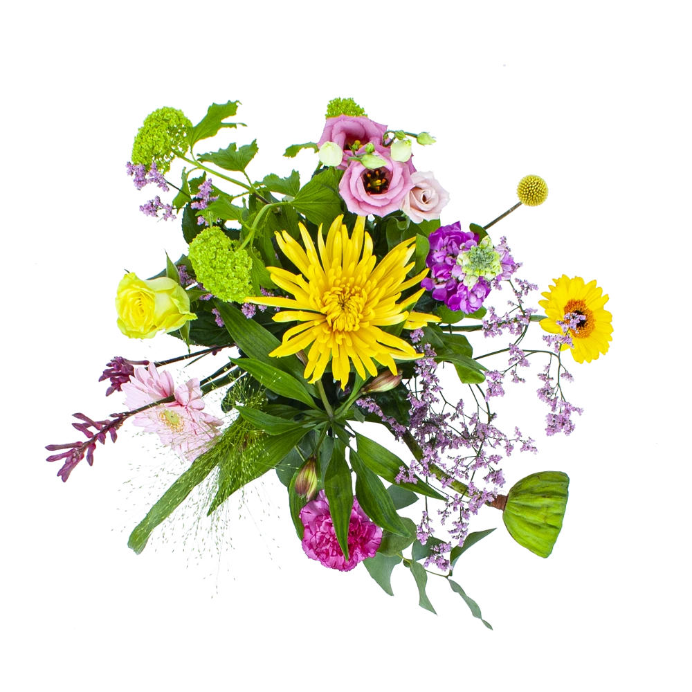 De combinatie van de kleurrijke gele en roze bloemen geven het veldboeket een zomerse en vrolijke uitstaling. Een boeket dat in elke ruimte gezelligheid creëert. Bovendien geschikt voor verschillende gelegenheden. Feliciteer, bedankt of verstuur zomaar dit prachtige handgebonden boeket en verras de ontvanger! * Exclusief accessoires en vaas