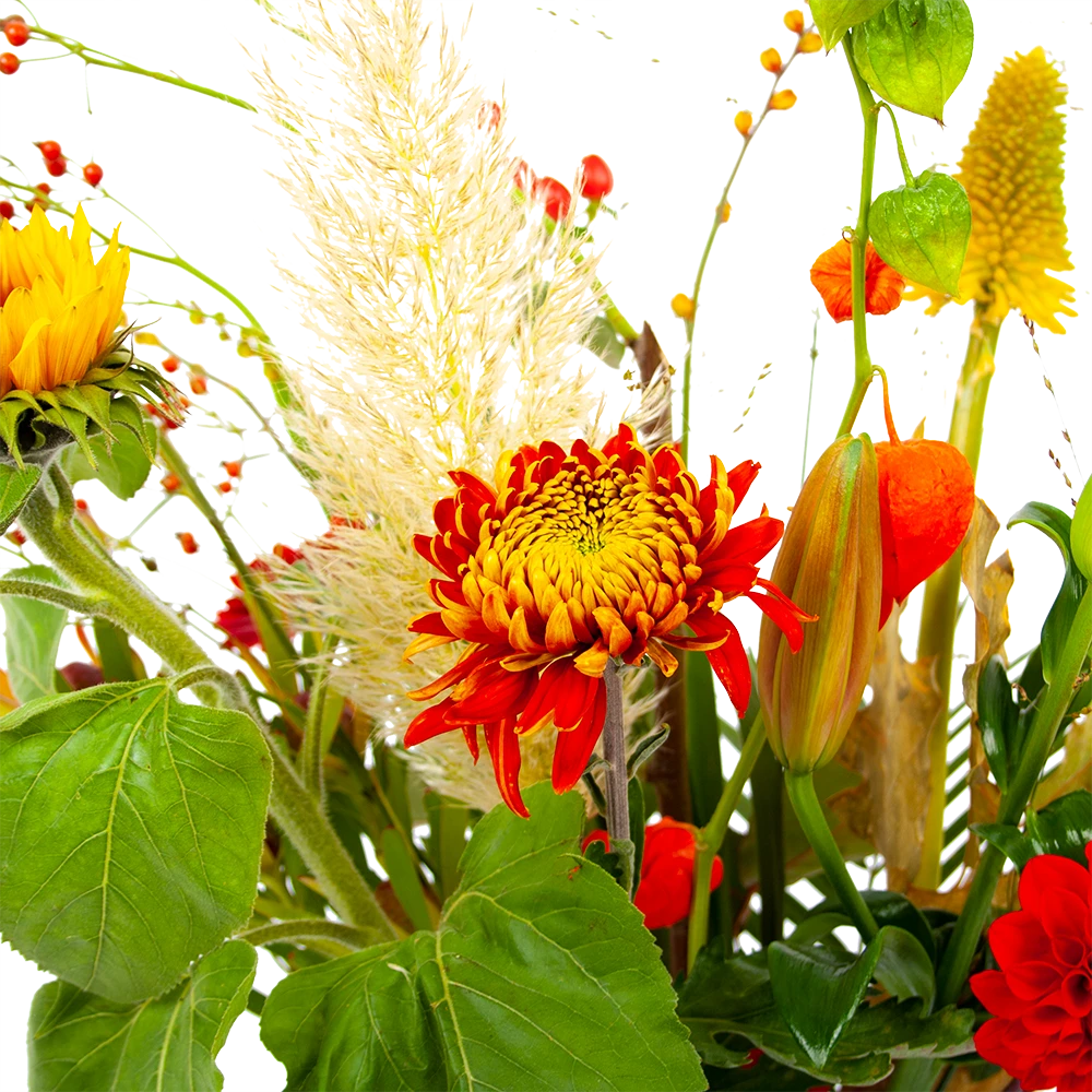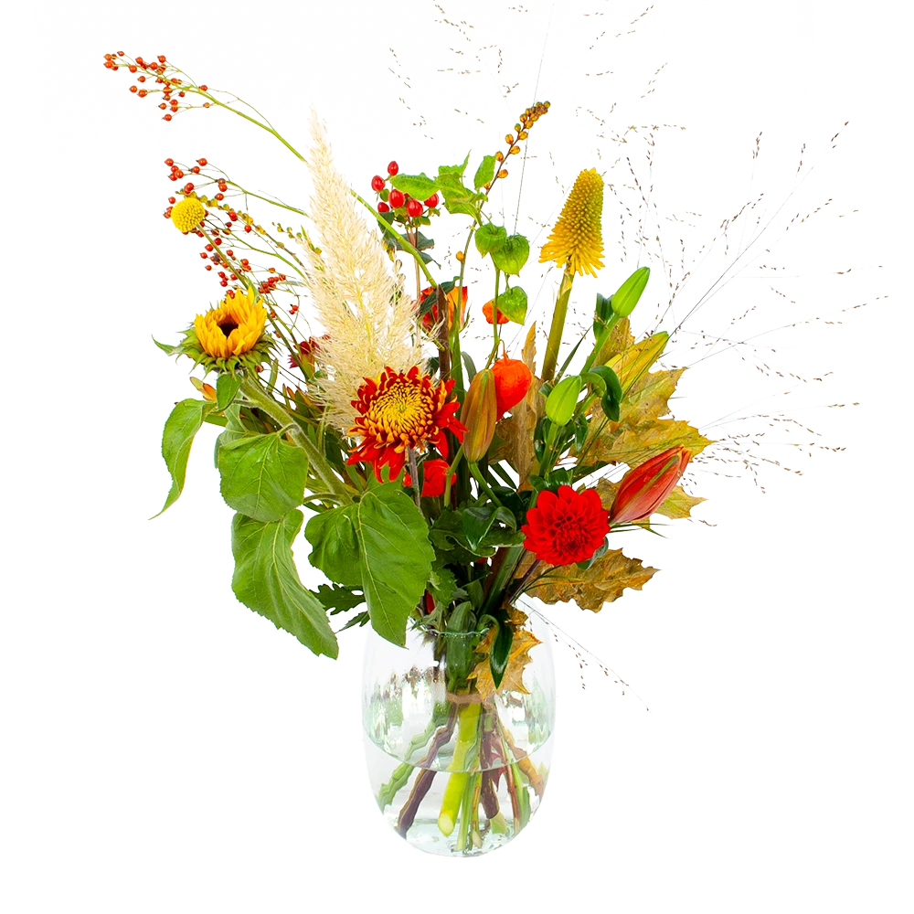 Met Boeket Pluim van het najaar breng je een prachtig najaarsboeket in huis! Verwen jezelf met verse bloemen of verras iemand anders! *Exclusief accessoires en vaas.