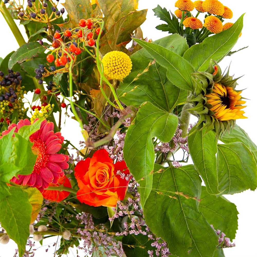 Met Boeket Vrolijk breng je een prachtig boeket in huis met de mooiste tinten voor het najaar! Verwen jezelf met verse bloemen of verras iemand anders! *Exclusief accessoires en vaas.